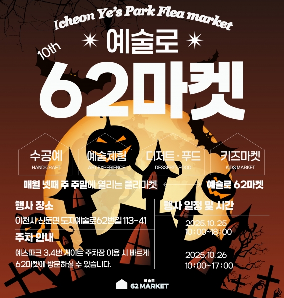 [한국Q뉴스] 이천도자예술마을에서는 오는 10월 25일부터 26일까지, 지역 예술가와 시민이 함께 어우러지는 수공예 장터 ‘예술로62마켓’을 개최한다.
