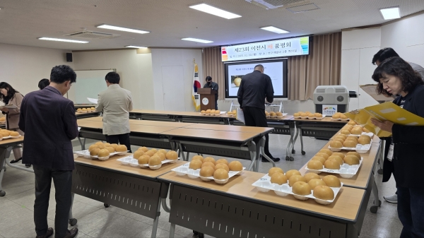 [한국Q뉴스] 이천시는 관내 배 재배 농업인들을 대상으로 지난 20일 농업기술센터 연구개발과에서 ‘제23회 이천시 배 품평회’를 개최해 총 3개 농가를 선정했다.