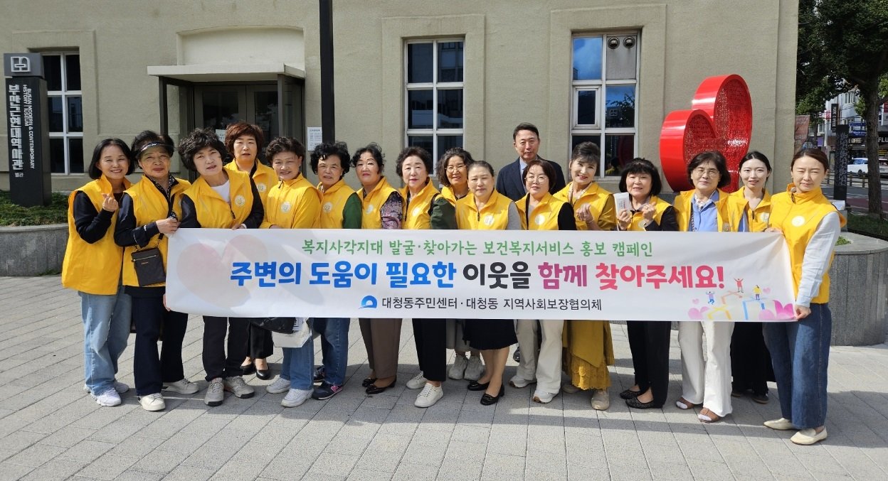[한국Q뉴스] 부산 중구 대청동 지역사회보장협의체(공동위원장 채명희, 최호은)는 지난 20일 이웃의 어려움을 함께 살피는“복지 위기가구 발굴 홍보 캠페인” 을 진행했다.