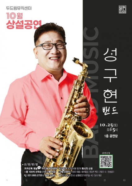 이번 무대에는 고양시 관현악단장 성구현을 중심으로 결성된 ‘성구현 밴드’ 가 출연해, 수준 높은 색소폰 연주와 감미로운 밴드 사운드로 깊어가는 가을 정취를 더할 감성 라이브 공연을 선보일 예정이다.