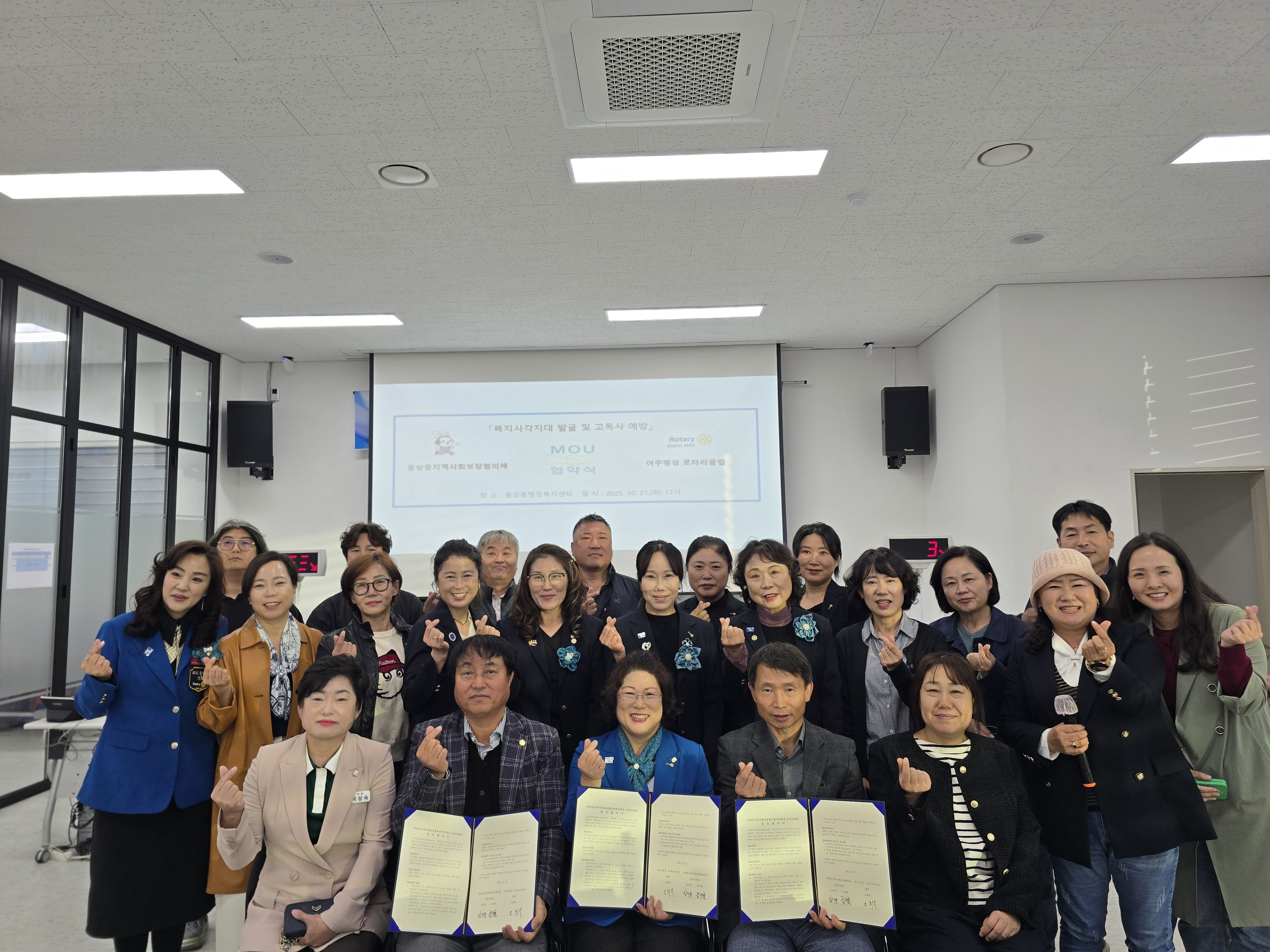 [한국Q뉴스] 중앙동지역사회보장협의체(공동위원장 심우봉, 김부열)와 여주명성로타리클럽(회장 오희숙)은 지난 10월 21일 중앙동행정복지센터에서 복지사각지대 해소와 고독사 예방을 위한 업무협약(MOU)을 체결했다.