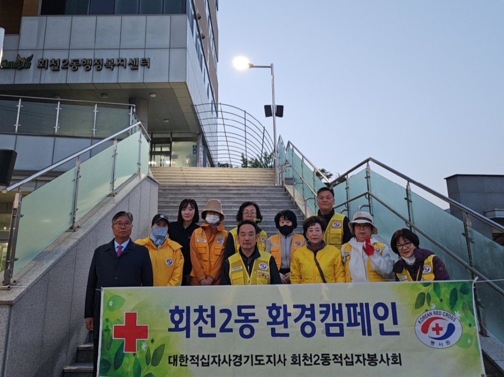 회천2동 적십자봉사회는 관내 환경 정화를 위해 해당 캠페인을 매월 2회 정기적으로 추진하고 있으며 주민들에게 쓰레기 투기 금지 및 환경 보호의 중요성을 알리는 홍보 활동도 함께 진행하고 있다.
