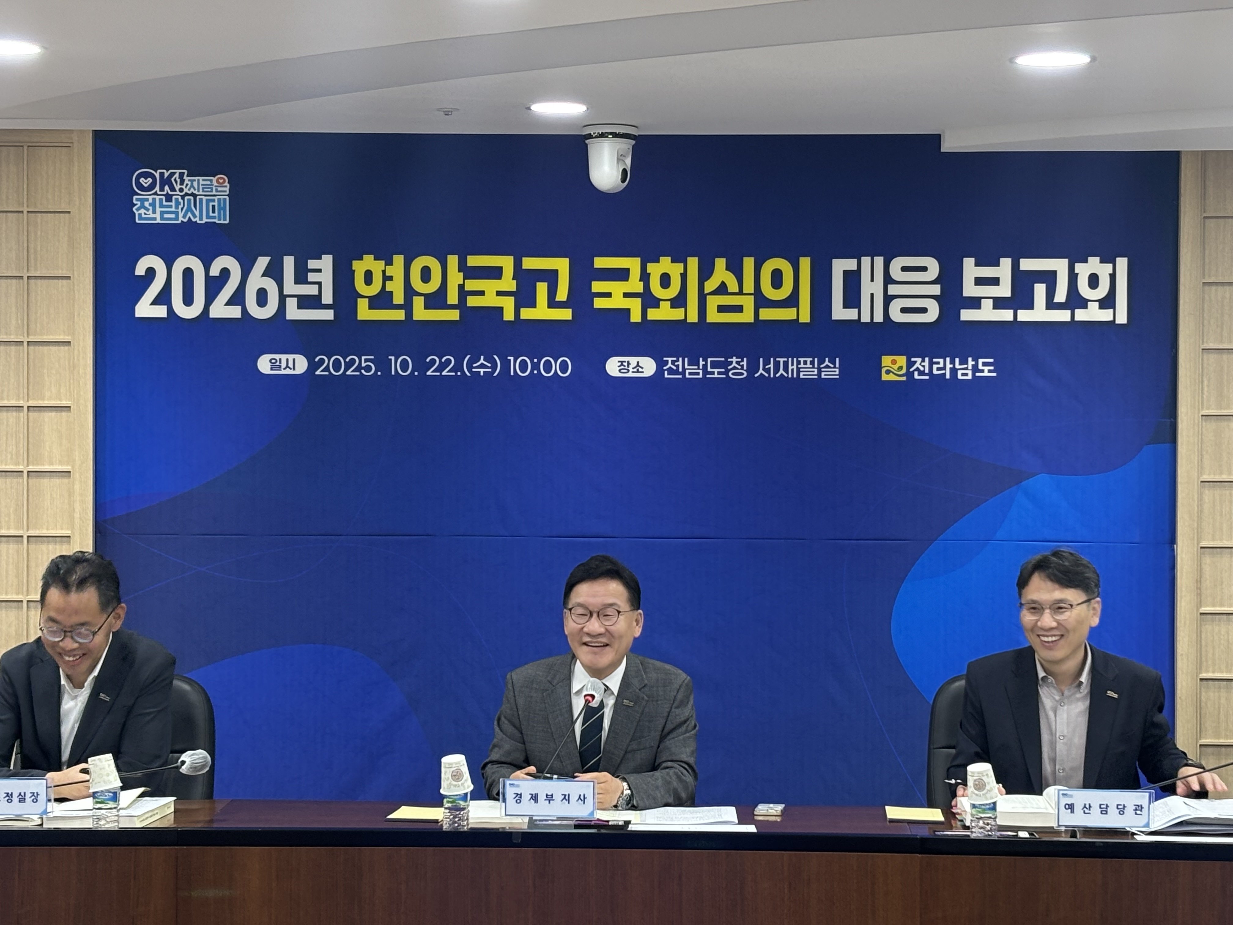 [한국Q뉴스] 전라남도는 22일 도청 서재필실에서 ‘2026년도 국고 현안사업 국회심의 대응 보고회’를 열고 국회 예산심의에 앞서 주요 현안 사업의 국고 확보 전략을 점검했다.