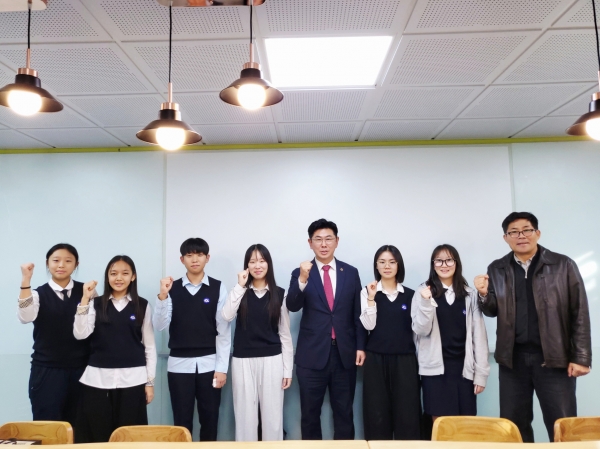 윤 의원은 갈월중학교 신문부 학생들을 만나 청소년들의 시선에서 본 미래 사회와 AI에 대한 생각을 함께 나누었다.