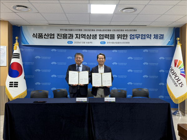 김덕호 식품진흥원 이사장은 “이번 협약을 계기로 식품진흥원이 축적해 온 역량과 네트워크를 활용해 지역과 협업하며 기업지원을 확대하는 계기가 될 것”이라고 기대감을 밝혔다.
