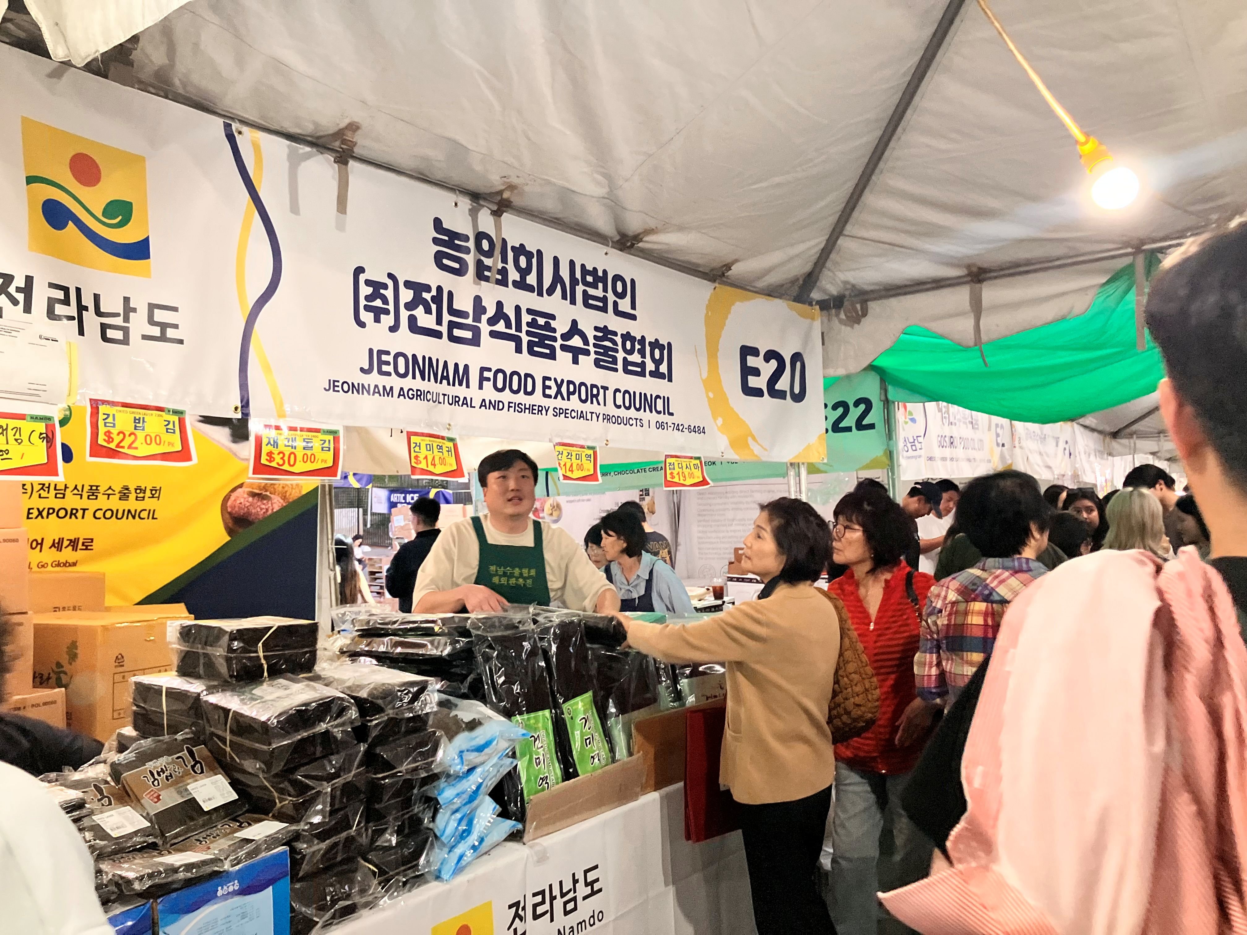 [한국Q뉴스] 전라남도는 지난 19일까지 4일간 미국 LA 서울국제공원에서 열린 ‘제52회 LA한인축제’에 농수산식품 수출기업 20개 사와 함께 참가해 전남 우수 농수산식품을 소개하며 현지에서 큰 호응을 얻었다고 밝혔다.