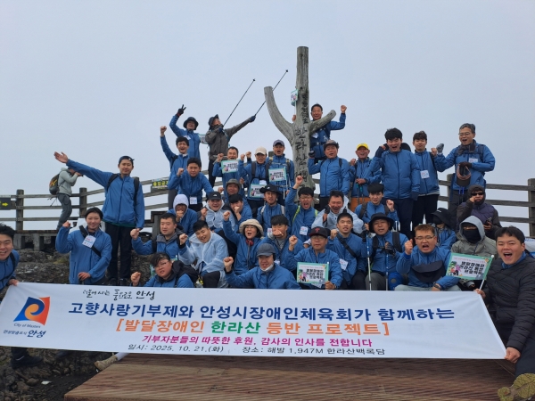 [한국Q뉴스] 안성시는 지난 10월 21일 ‘2025 발달장애인 한라산 등반 프로젝트’를 성공적으로 마쳤다고 밝혔다.
