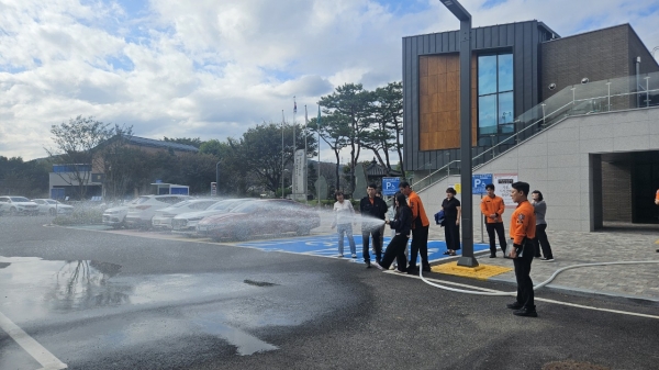 직원들은 경보 발령 후 신속히 지정된 대피장소로 이동하고 소화기 및 소화전을 직접 사용해보며 초기 화재 진압의 중요성과 대피요령을 숙지하는 시간을 가졌다.