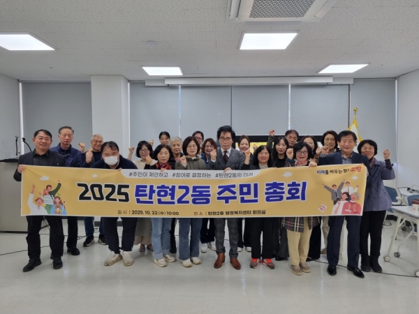 [한국Q뉴스] 고양특례시 일산서구 탄현2동 주민자치회는 지난 22일 탄현2동 행정복지센터 회의실에서 주민, 주민자치회 위원 및 동 관계자 등 100여명이 참석한 가운데 ‘2025년 제4회 주민총회’를 성황리에 개최했다.