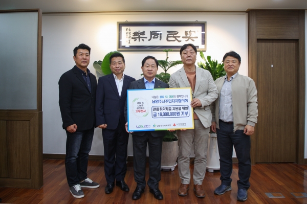 [한국Q뉴스] 남양주시는 23일 시청 시장실에서 남양주시 주민자치협의회가 지역 내 취약계층 지원을 위해 1,600만원의 후원금을 남양주시복지재단에 기탁했다고 밝혔다.