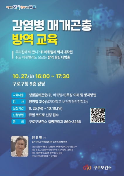 [한국Q뉴스] 구로구가 오는 27일 오후 4시 구청 강당에서 ‘감염병 매개곤충 방역 교육’을 실시한다.