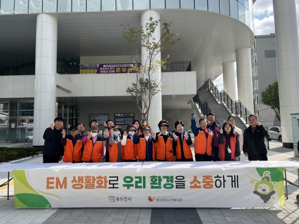[한국Q뉴스] 동두천시는 지난 23일 어울림센터 앞에서 동두천노인복지관 EM서포터즈 어르신 10여명과 함께 EM 생활화를 위한 거리 홍보 활동을 펼쳤다.