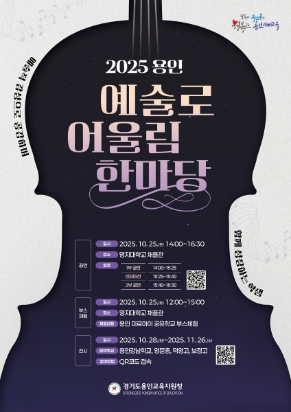 [한국Q뉴스] 용인교육지원청은 오는 10월 25일 명지대학교 채플관에서 ‘2025 용인 예술로 어울림한마당’을 개최한다.