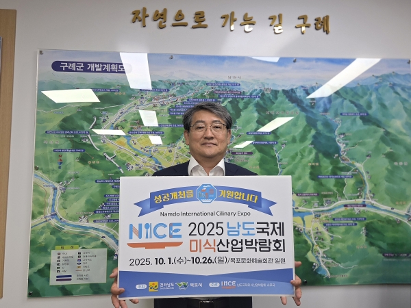 [한국Q뉴스] 전라남도 구례군이 ‘2025 남도국제미식산업박람회’의 성공적인 개최를 기원하는 릴레이 응원 챌린지의 마지막 주자로 참여했다.