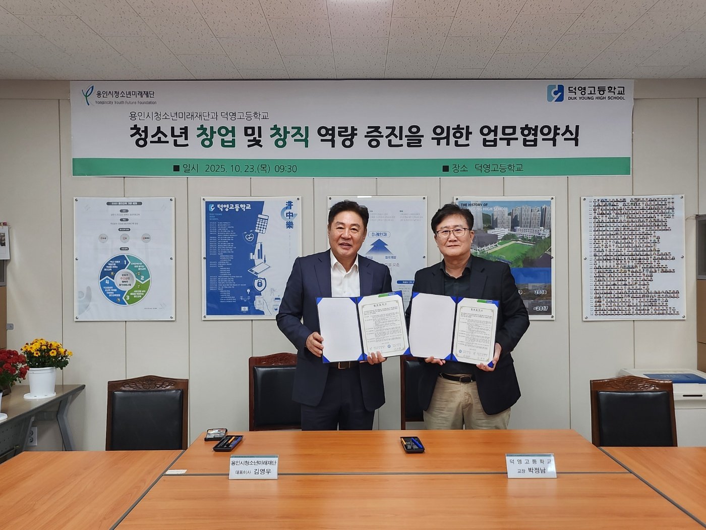 [한국Q뉴스] (재)용인시청소년미래재단(이사장 이상일)은 지난 23일 덕영고등학교와 청소년의 창업 및 창직 역량 증진을 위한 업무협약(MOU)을 체결했다.