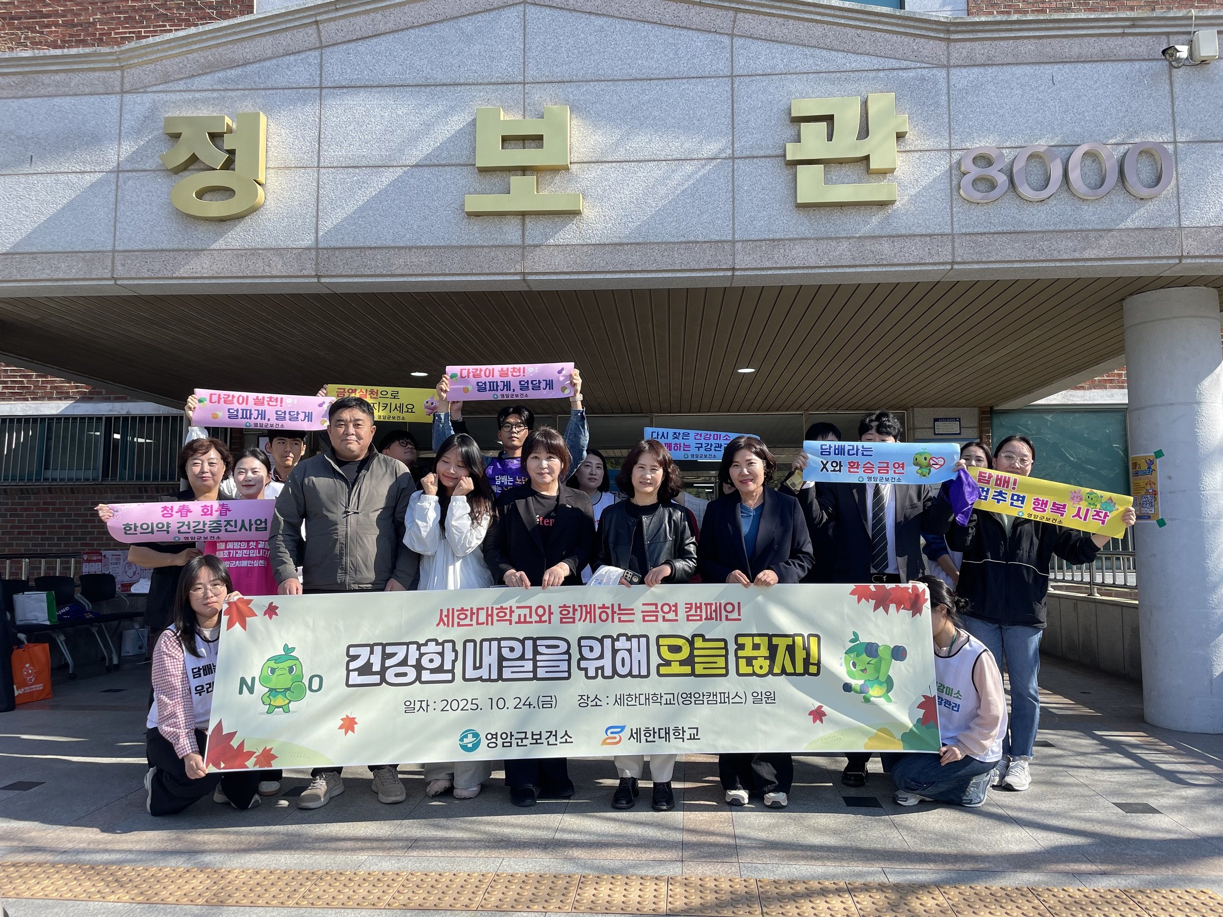 금연 캠페인에서는 세한대 교직원과 금연서포터즈가 ‘건강한 내일을 위해 오늘 끊자!’를 구호로 흡연과 간접흡연의 위험성을 알렸다.