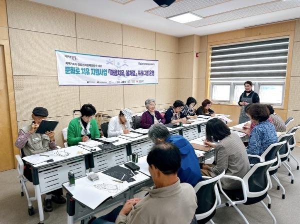 문화체육관광부가 주최하고 한국문화예술교육진흥원이 주관하는 ‘문화로 치유 지원 사업’은 음악, 미술, 연극, 무용 등 분야별 예술치료사로 구성된 예술치유 단체가 지역 치매안심센터, 정신건강복지센터, Wee클래스 등과 협업해 참여자 특성에 맞춘 문화예술치유 프로그램을 운영하는 사업이다.