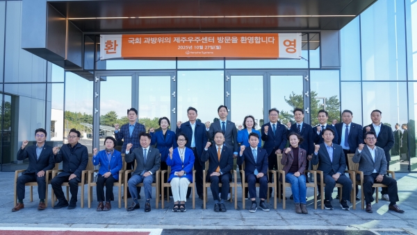 오영훈 지사는 27일 국정감사 현장 시찰차 한화우주센터를 방문한 최민희 과방위 위원장을 비롯한 위원들을 만나 제주의 우주산업 강점과 주요 성과를 소개했다.