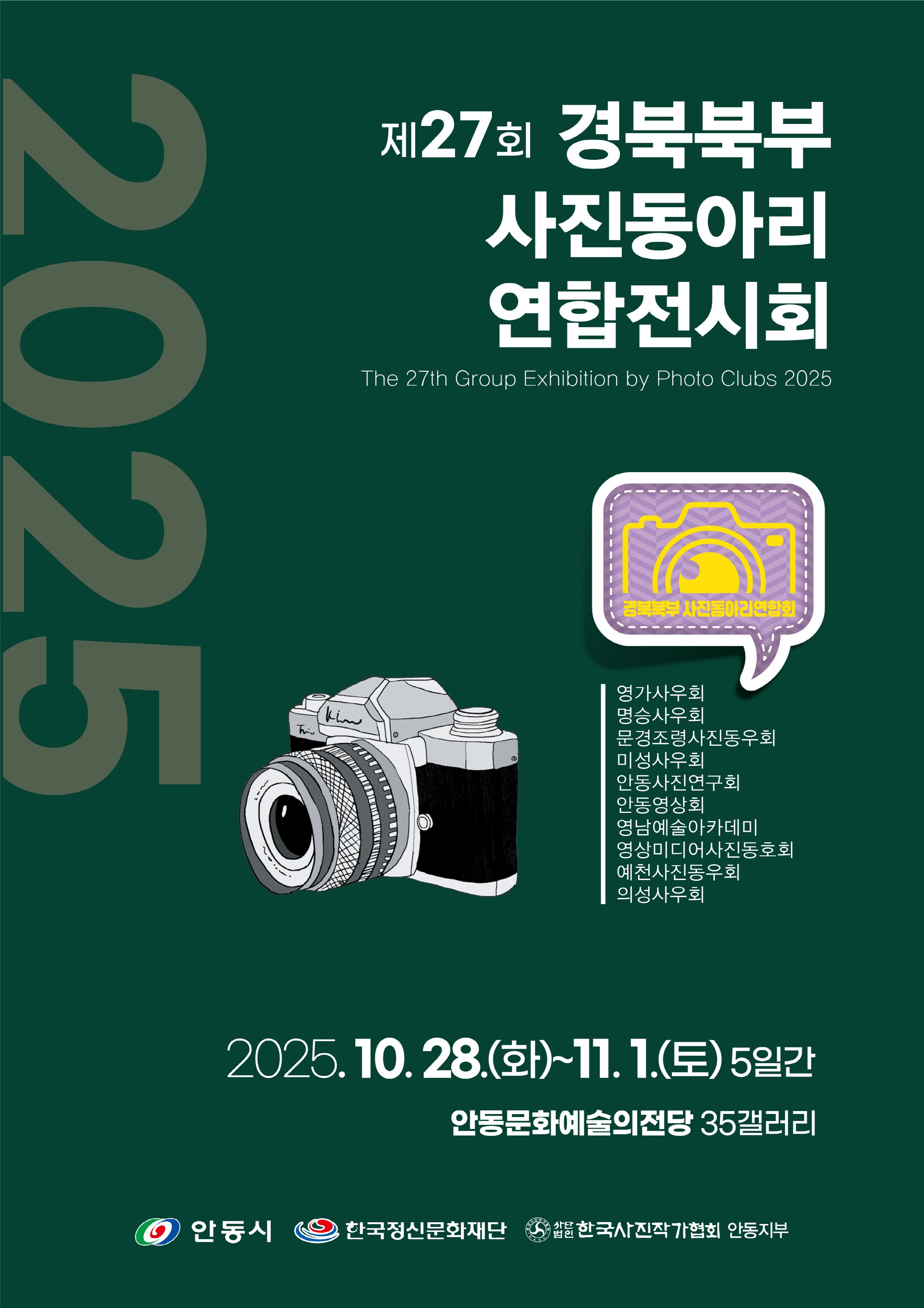 [한국Q뉴스] 경북북부사진동아리연합회(회장 박유환)는 오는 10월 28일(화)부터 11월 1일(토)까지 5일간 안동예술의전당 갤러리에서 ‘제27회 경북북부사진동아리연합전시회’를 개최한다.
