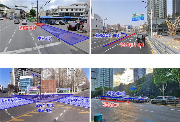 서초구 방배교차로에는 교통섬을 제거해 보행자 안전을 개선했다.