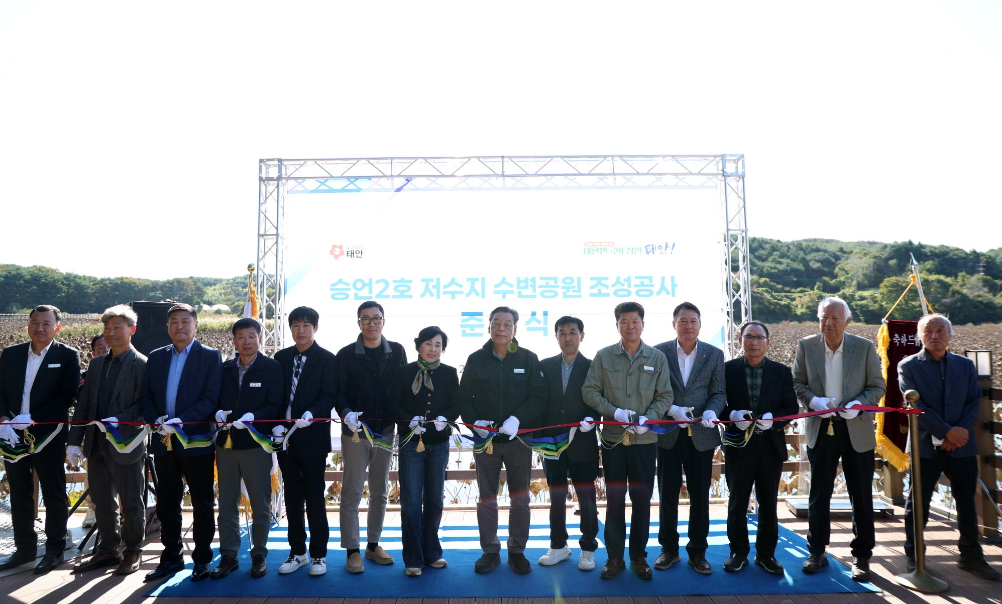 태안군은 지난 27일 안면읍 승언리에서 가세로 군수 등 군 관계자와 군의원, 지역 주민 등이 참석한 가운데 ‘승언2호 저수지 수변공원 조성공사 준공식’을 가졌다고 밝혔다.