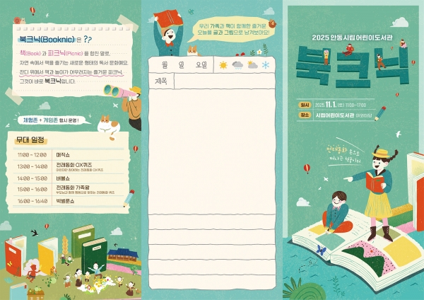 [한국Q뉴스] 안동시립어린이도서관에서는 청량한 계절, 가을을 맞아 온 가족이 함께 어우러질 수 있는 책문화 축제로 ‘2025년 안동시립어린이도서관 북크닉’행사를 오는 11월 1일 11시부터 오후 5시까지 개최한다.