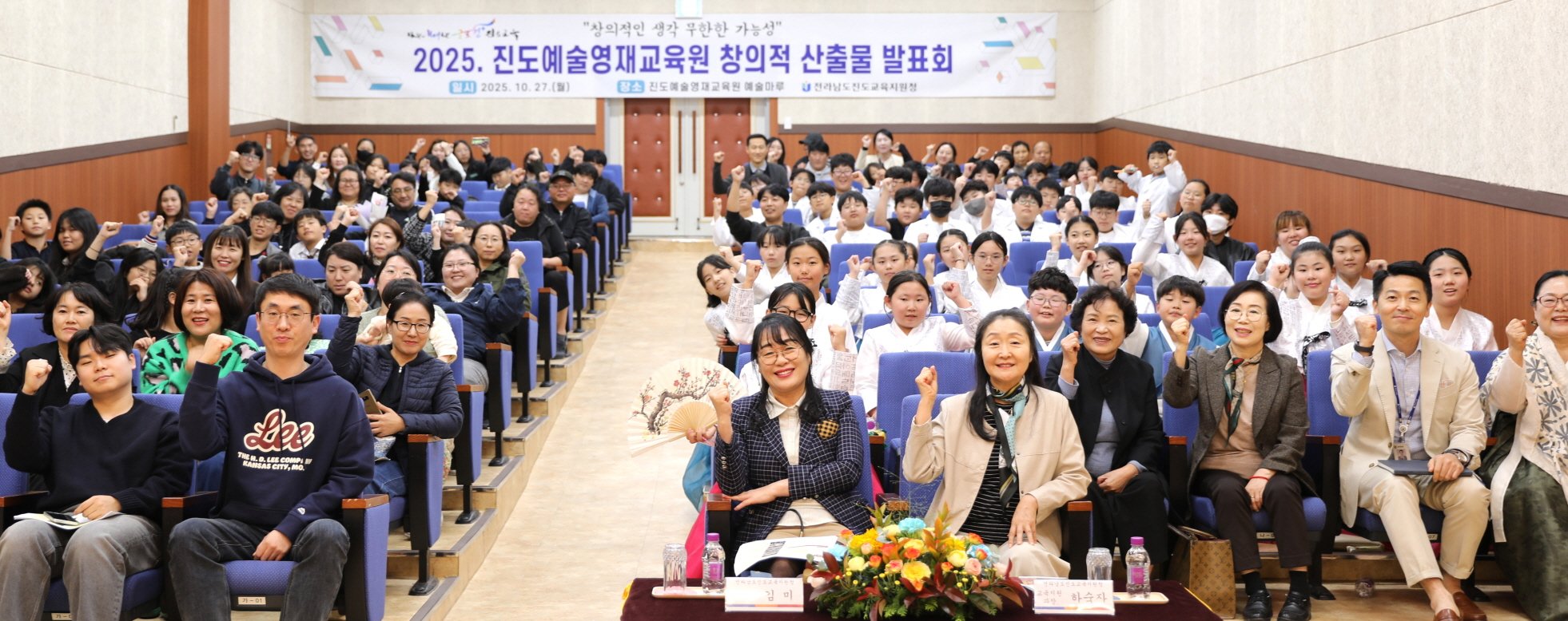 [한국Q뉴스] 진도예술영재교육원(원장 김 미)은 10월 27일(월), 영재교육원 학생 50명과 지도교사, 관람을 희망하는 학생 및 학부모 등이 참석한 가운데 ‘2025 창의적 산출물 발표회’를 개최했다.
