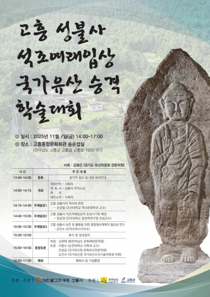 전라남도 유형문화유산 제250호인 ‘고흥 성불사 석조여래입상’의 국가유산적 가치를 재평가하고 성불사를 비롯한 고흥 지역 불교문화유산의 역사적 의미를 재조명하기 위해 마련됐다.