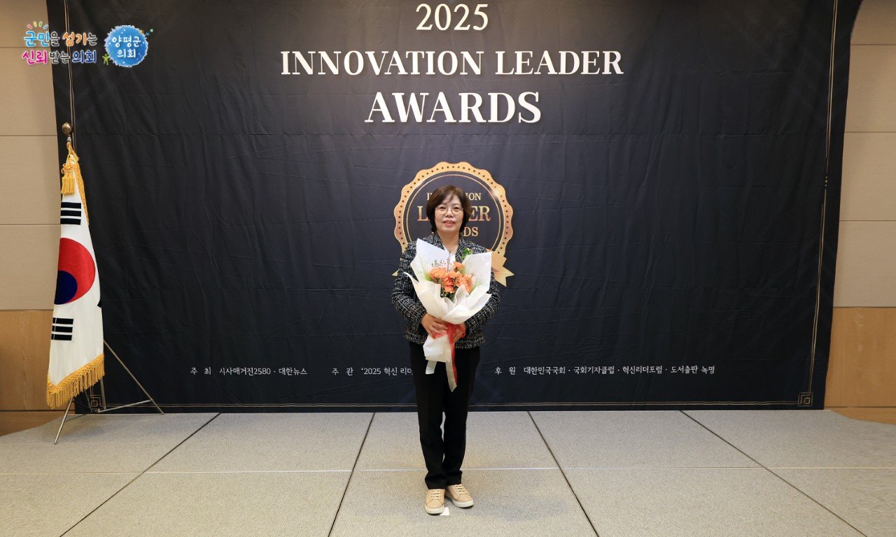 [한국Q뉴스] 양평군의회 오혜자 의장이 ‘2025 혁신리더 올해를 빛낸 인물’시상식에서 의정발전공훈 부문 의정대상을 수상했다.