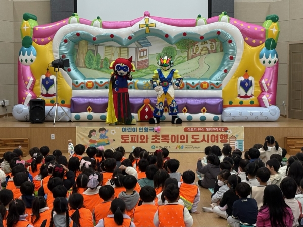 [한국Q뉴스] 아산시는 30일 동부건강생활지원센터 다목적 강당에서 지역 내 아토피·천식안심학교를 포함한 미취학 아동 및 유치원·어린이집 등 개소 원아를 대상으로 인형극 ‘토피와 초록이의 도시여행’ 공연을 진행했다고 밝혔다.