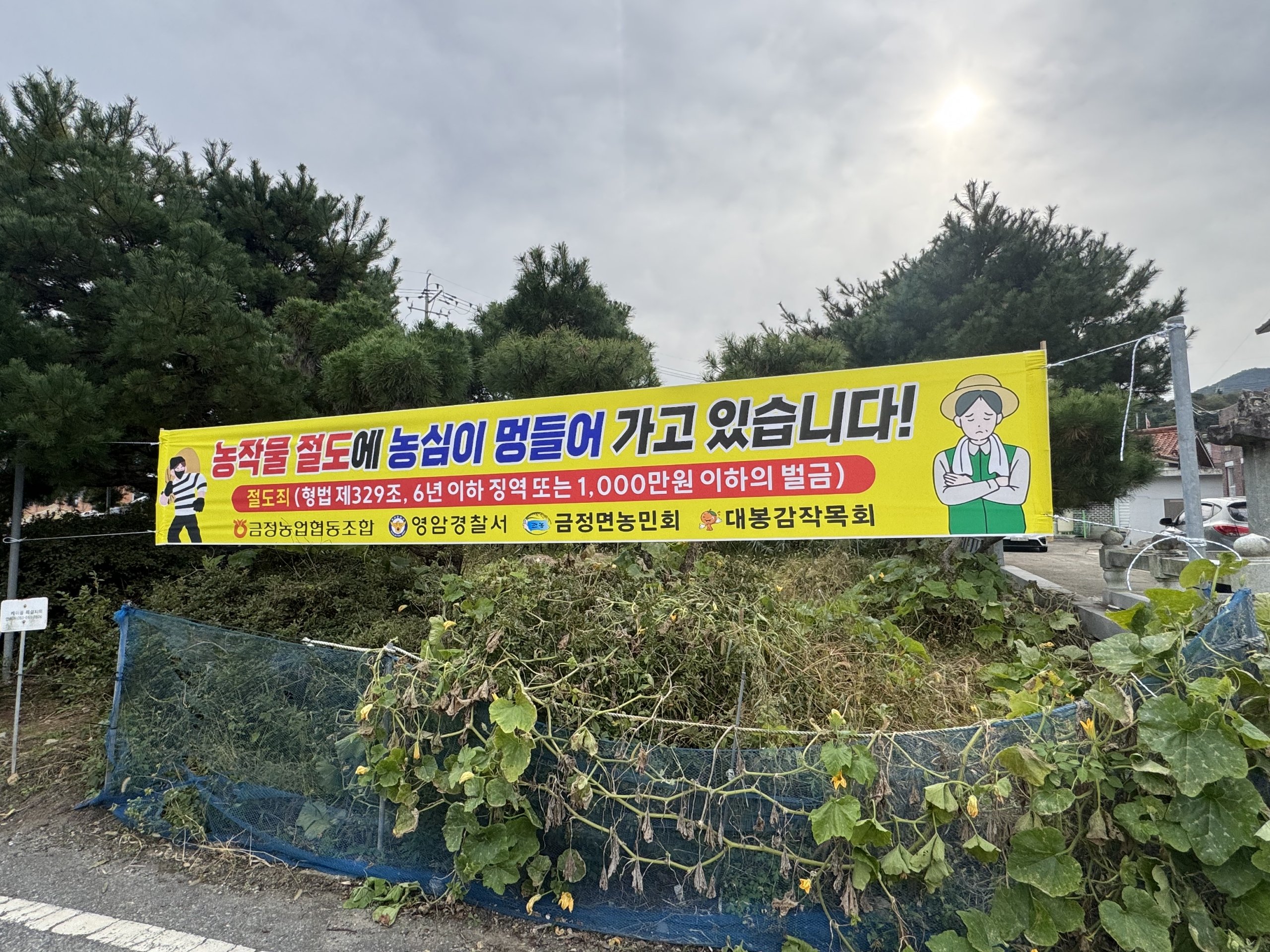 특히 금정면에서는 감 수확철에 앞서 신북파출소와 면사무소가 협업, ‘대봉감 절도 예방’플래카드를 일제히 설치하며 지역 특성에 맞는 농민 피해 사전 차단 및 주민 자위 방범의식을 고취시켰다.