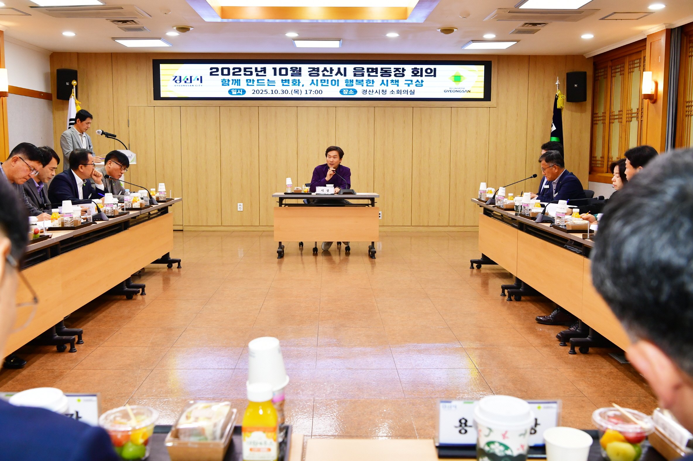 [한국Q뉴스] 경산시는 30일 시청 소회의실에서 조현일 시장 주재로 ‘2025년 10월 읍면동장 회의’를 열고 2026년 읍면동 특수 시책 보고 및 현안 사항 협의를 진행했다.