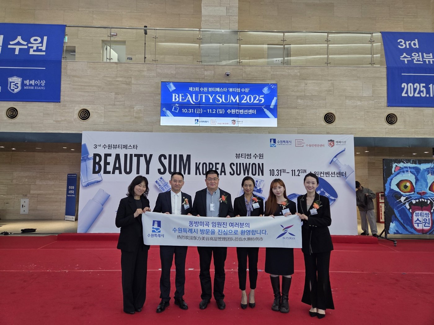 동방미곡 임원진은 수원컨벤션센터에서 열린 2025 뷰티썸 수원 개막식과 세미나에 참석해 한국의 뷰티·바이오 기술력을 확인하고 참가 기업들과 교류했다.