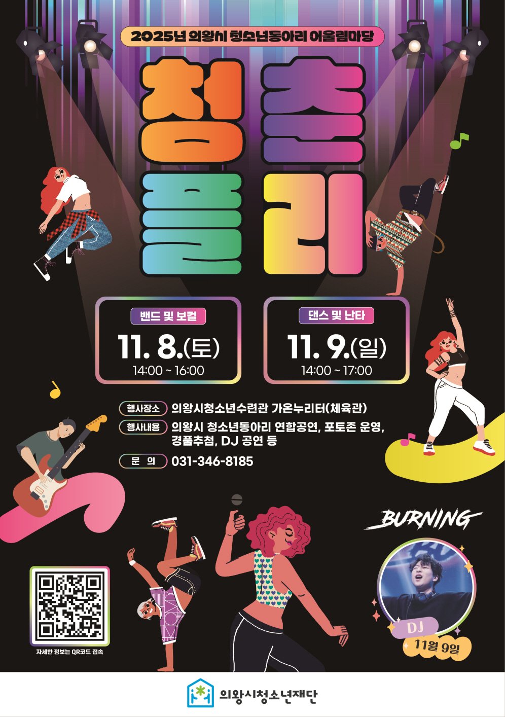 [한국Q뉴스] 의왕시청소년재단(이사장 김성제) 산하 의왕시청소년수련관은 오는 11월 8일부터 9일까지 이틀간, 청소년 및 지역주민을 대상으로 의왕시 청소년동아리 어울림마당 ‘청춘플리’를 개최한다.
