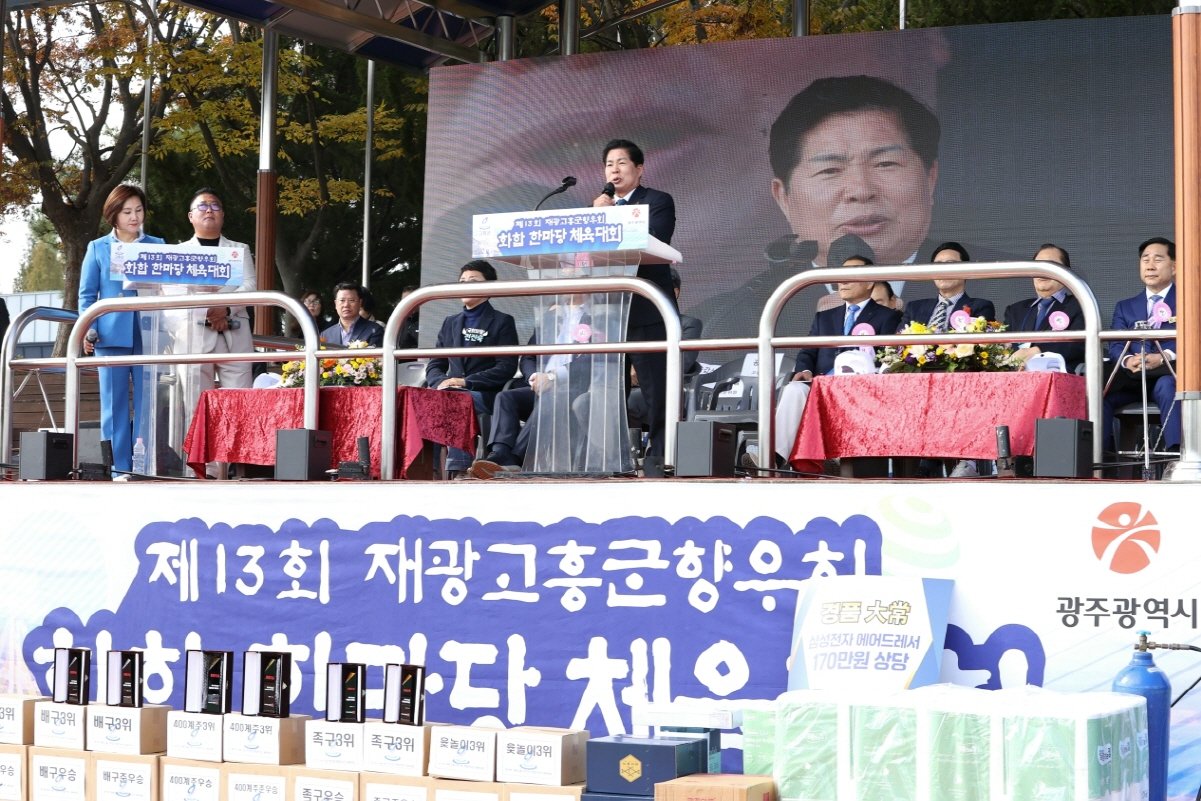 이날 체육대회에는 공영민 군수를 비롯해 광주지역 기관·단체장과 고흥군 읍·면 기관단체장, 재광주고흥군향우회원 등 1,000여명이 참석해 고향의 정을 나누고 향우 간 우의를 다지는 뜻깊은 시간을 가졌다.