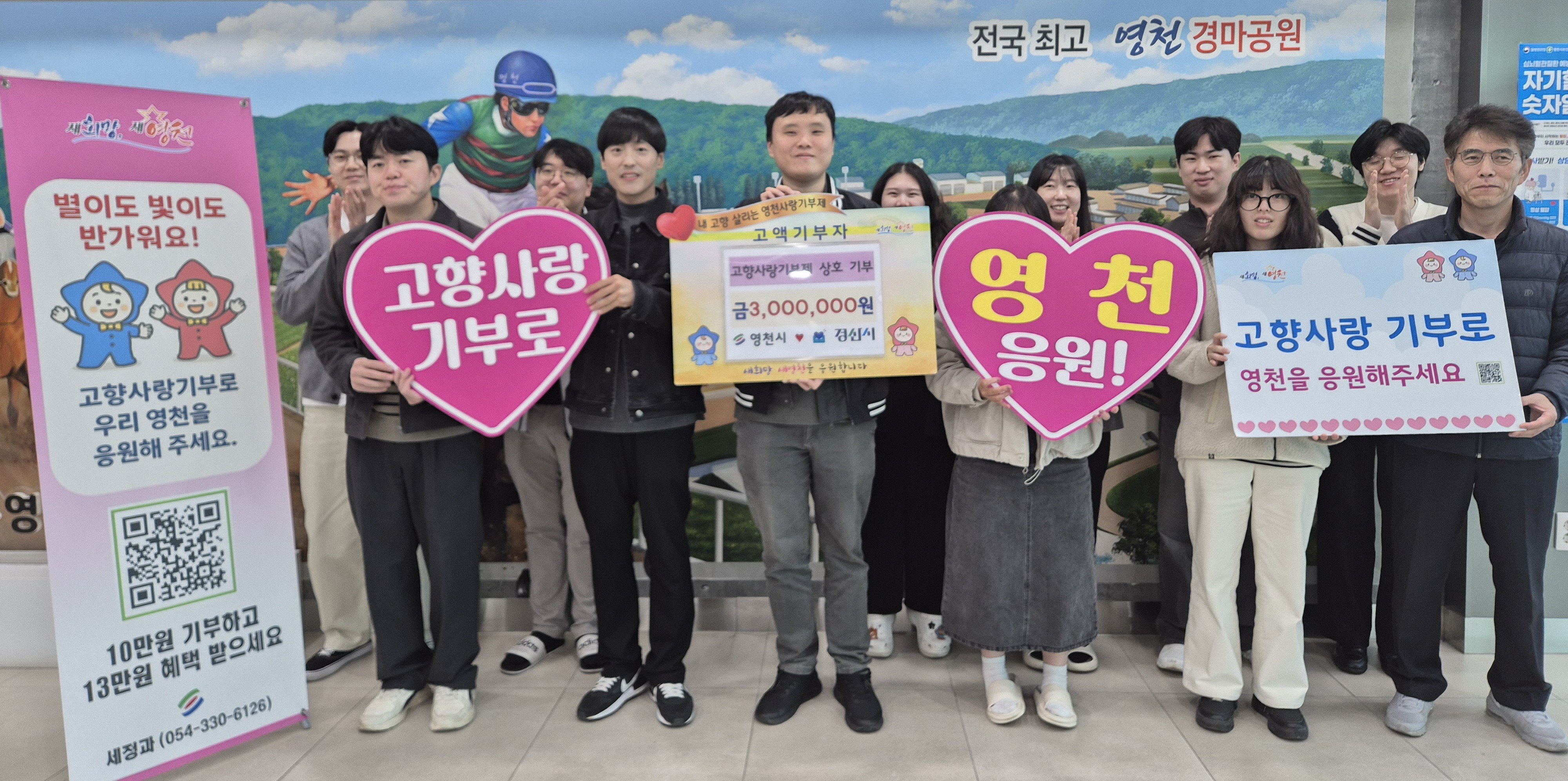 영천시는 세정과, 공원관리사업소, 신녕면·화남면·남부동 행정복지센터 등 소속 직원 30명이 참여해 경산시에 총 300만원을 기부했다.