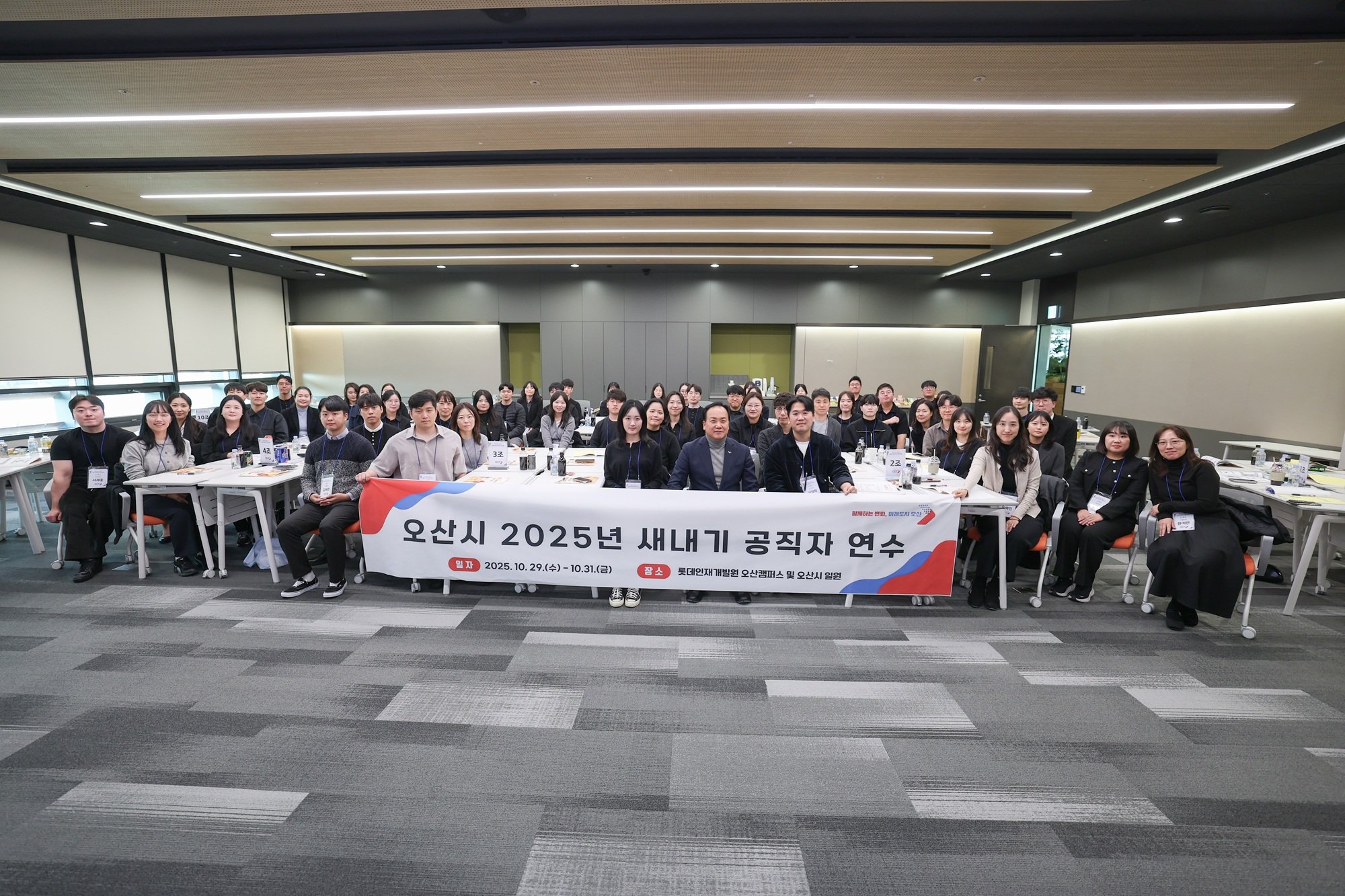 [한국Q뉴스] 오산시는 지난 10월 29일부터 31일까지 3일간, 롯데인재개발원 오산캠퍼스에서 신규 임용 공직자 57명을 대상으로 ‘새내기 공직자 연수’를 실시했다.