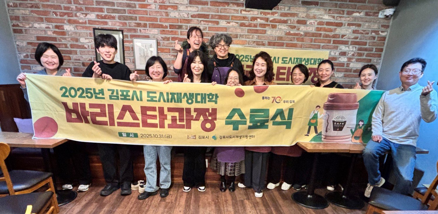 [한국Q뉴스] 김포시는 지난 31일 사우동 노후주거지 정비사업 대상지에서 ‘도시재생대학 바리스타 과정’수료식을 진행했다.