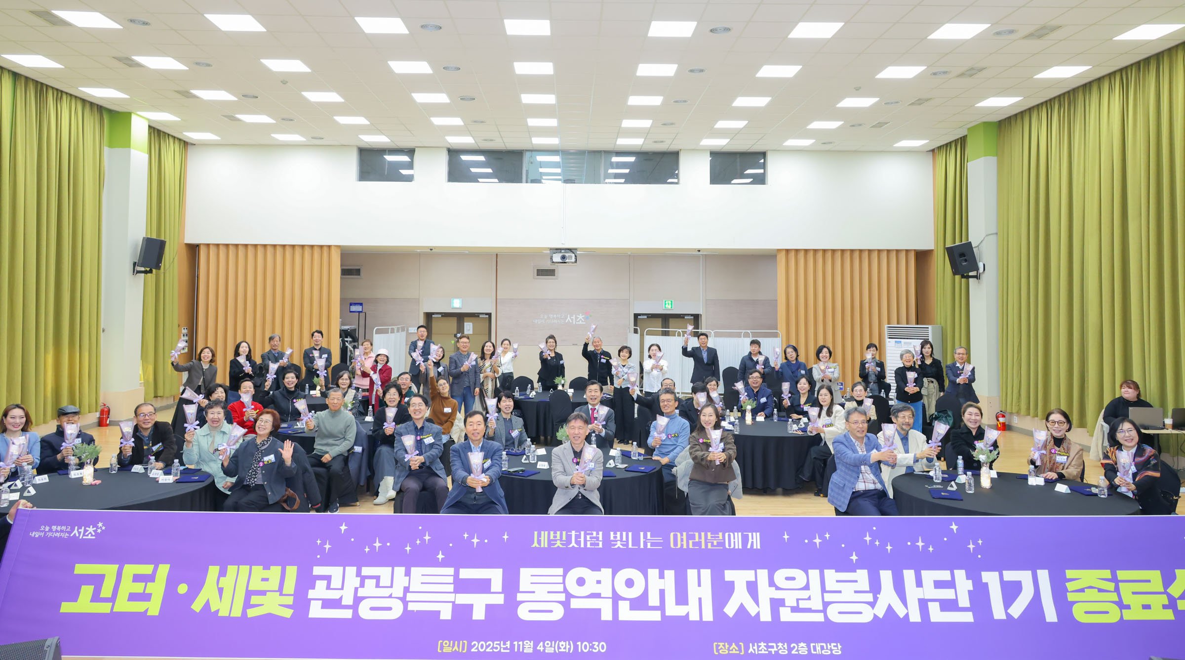 [한국Q뉴스] 서울 서초구는 지난 4일 ‘고터·세빛 관광특구 통역안내 자원봉사단’ 1기 종료식을 성황리에 마쳤다고 밝혔다.