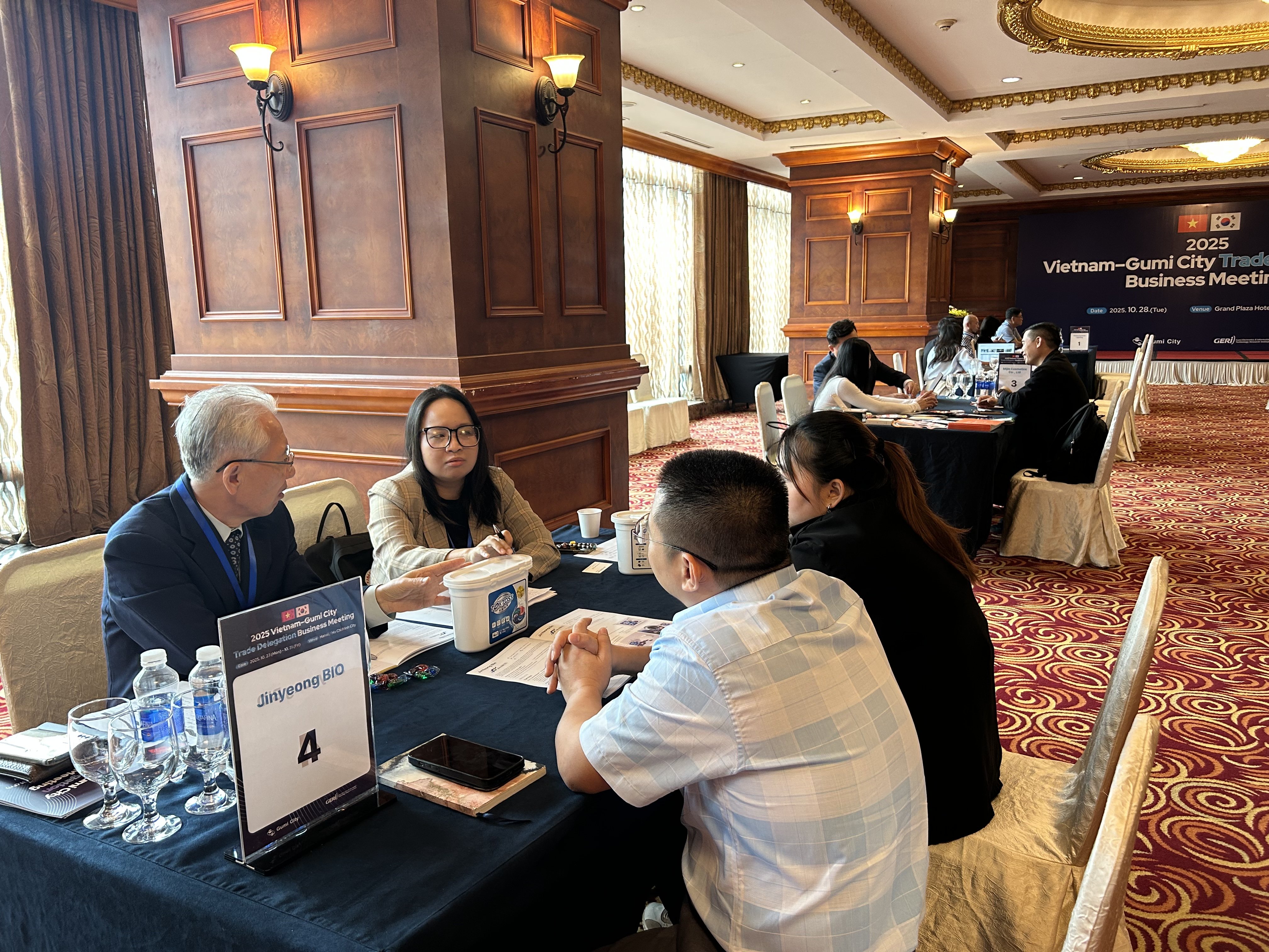 구미시 베트남 무역사절단 결과보고 파견개요 기湯湷 간 : 2025. 10. 27. ∼ 11월 1일 파견지역 : 베트남 2개 지역 참가품목 : 종합 품목 참가기업 : 구미 기업 7개사 2025.4.14.~5.13. 파견기업 모집 공고2025.5.28. 파견기업 선정평가위원회 개최 및 기업 선정완료 지원내용- 현지바이어 발굴 및 리스트 제공- 매칭 바이어 대상 현지 1:1 수출상담회 개최 및 공동비용- 상담회 기간 중 기업별 통역비, 1인 항공료 파견결과 수출상담 : 총 78건, 1,304만불- 하노이 : 42건, 968만불- 호치민 : 36건, 336만불 수출 MOU 체결 : 총 9건, 485만불