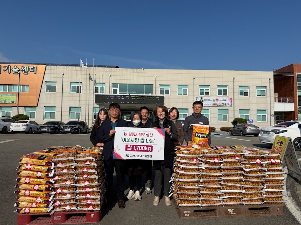 [한국Q뉴스] 고성군에서는 우리 쌀 소비촉진과 나눔 문화 확산의 일환으로 11월 4일 농업기술센터 벼 실증시험포에서 생산된 쌀 1,700kg을 관내 소외계층에 전달했다.