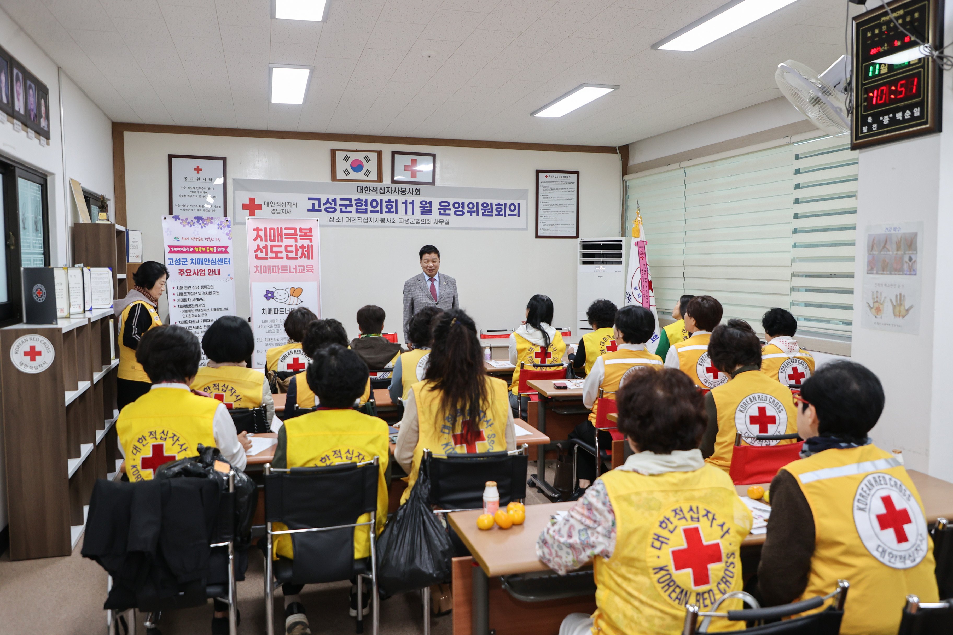 [한국Q뉴스] 고성군 치매안심센터는 11월 4일 1시부터 대한적십자 사무실에서 대한적십자사봉사회 고성지구협의회 회원을 대상으로 치매에 대한 바른 이해와 치매안심센터의 역할을 주제로 한 치매인식개선 교육을 실시했다.
