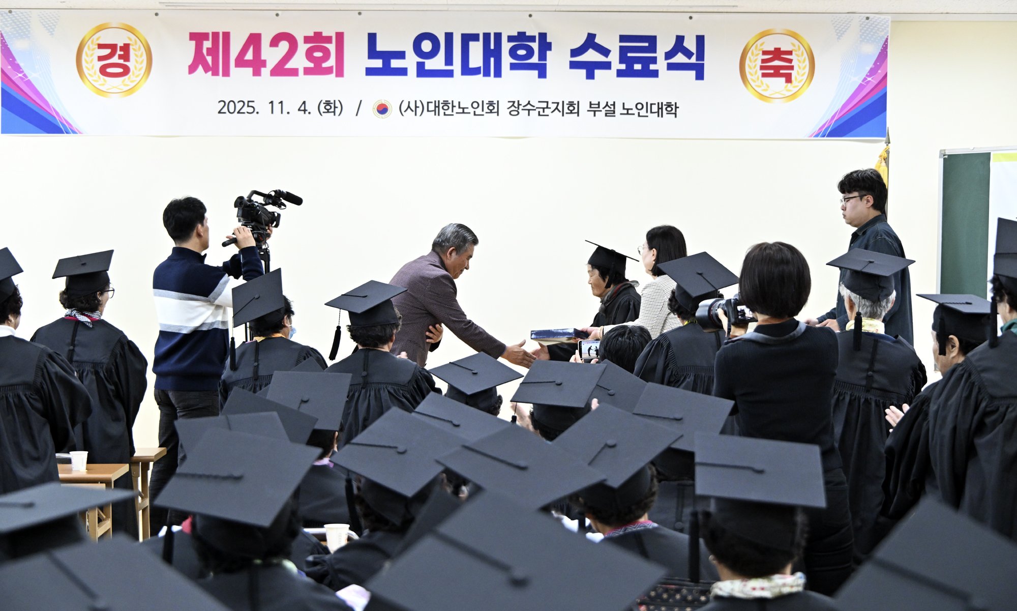 [한국Q뉴스] 장수군은 4일 대한노인회 장수군지회가 장수군사회복지회관에서 제42회 노인대학 수료식을 개최했다고 밝혔다.