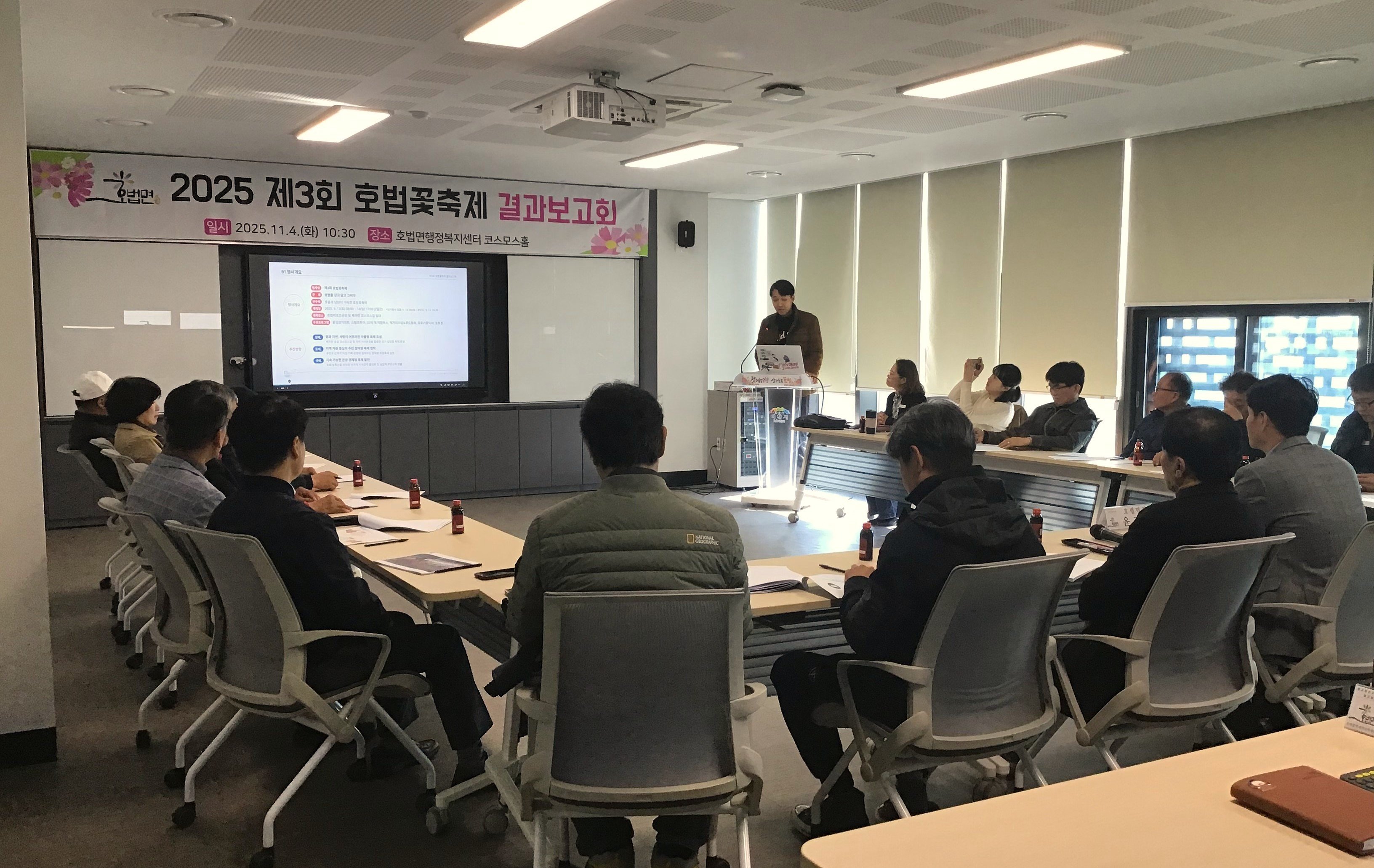 [한국Q뉴스] 이천시 호법면과 호법꽃축제 추진위원회는 11월 4일 호법면 행정복지센터 코스모스홀에서 ‘제3회 호법꽃축제 결과보고회’를 개최하고 축제 운영 성과와 향후 개선 운영 방향을 논의했다고 밝혔다.