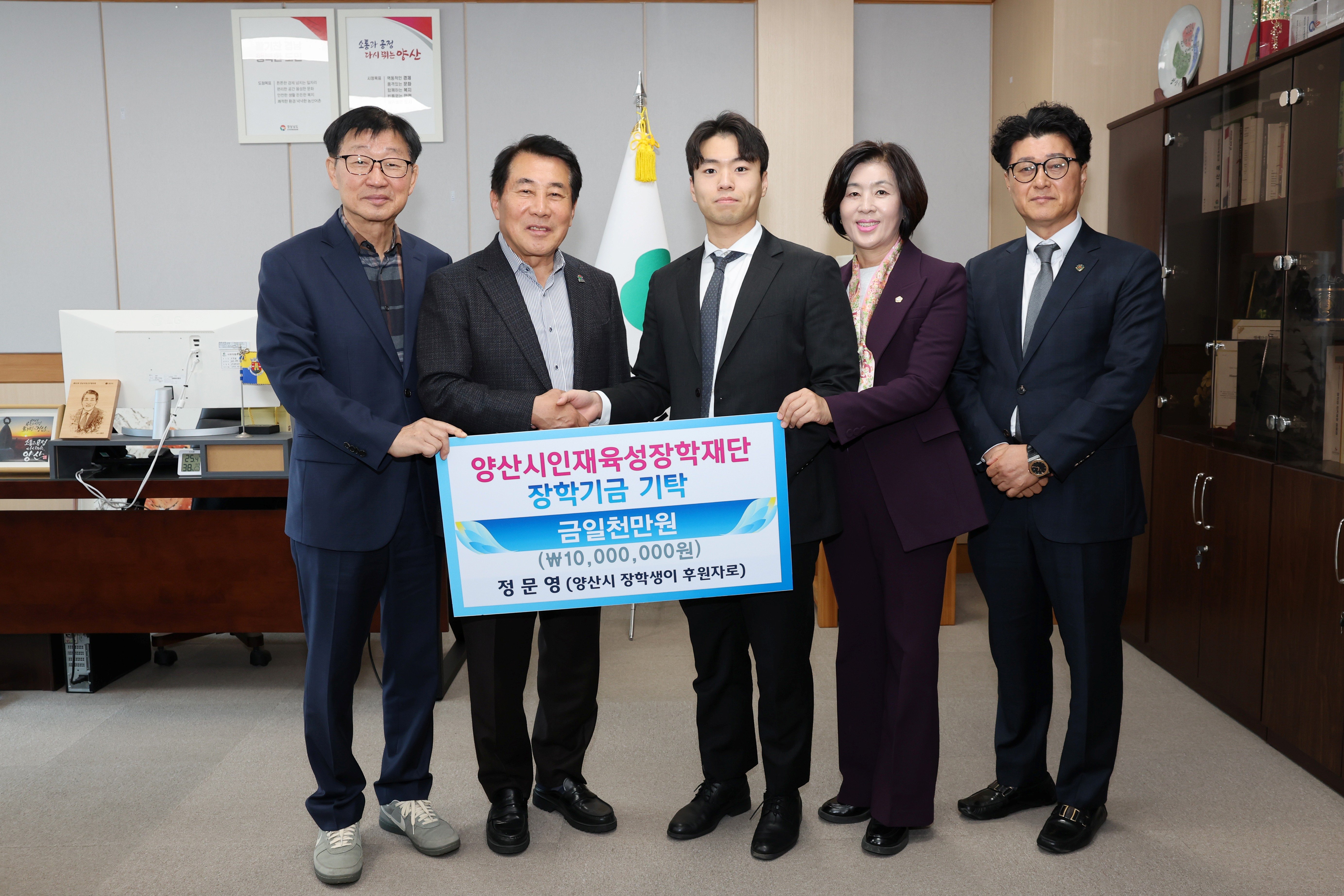 [한국Q뉴스] 한양대학교병원에 근무 중인 정문영 의사가 5일 양산시를 방문해 양산시인재육성장학재단에 장학금 1,000만원을 기탁했다.