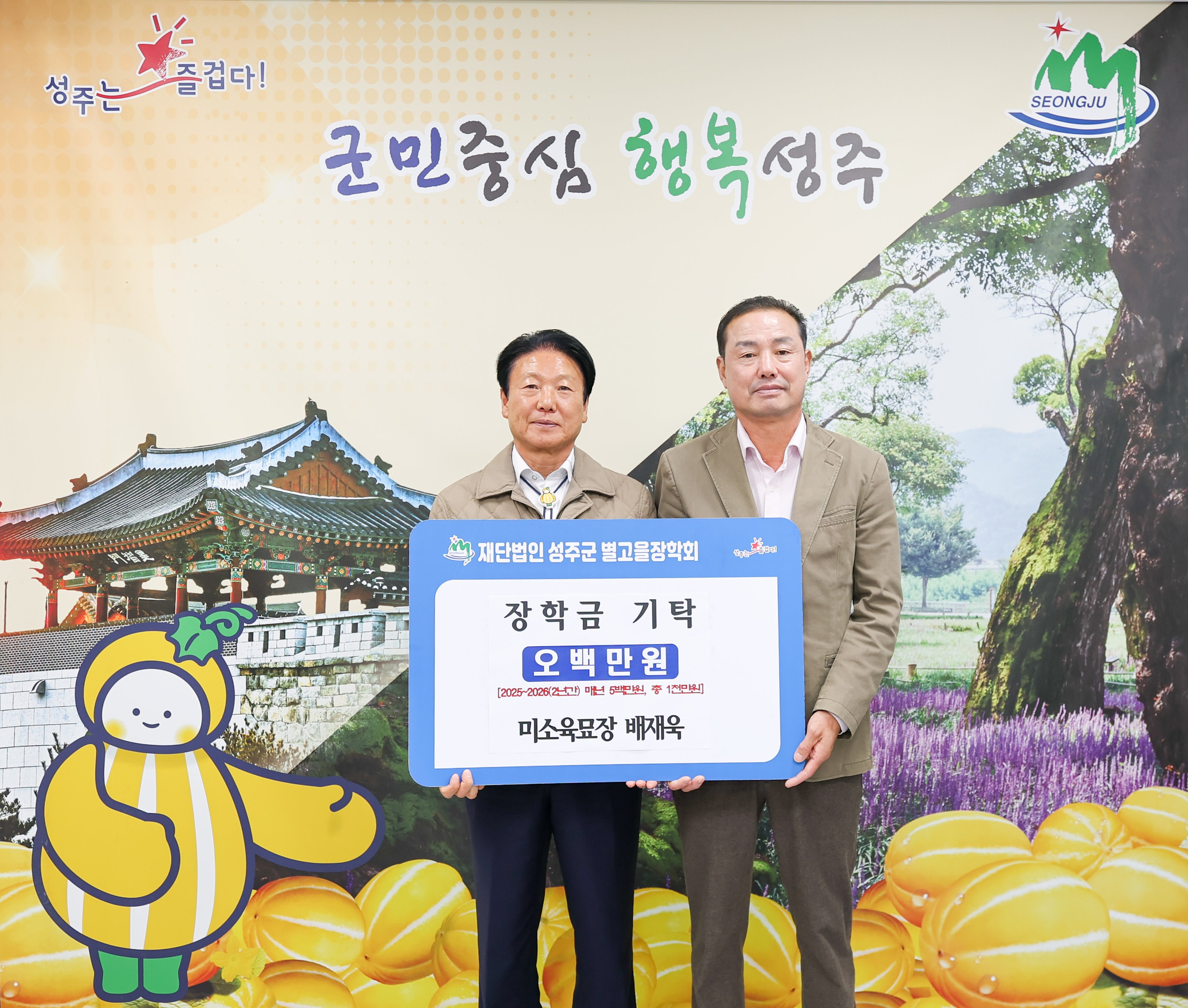 이병환 이사장은 “농업 분야에서 탁월한 기술로 지역을 빛내고 있는 대표의 뜻깊은 기탁에 깊이 감사드린다”며 “기탁해주신 장학금은 성주군 인재육성을 위해 소중히 사용하겠다”고 전했다