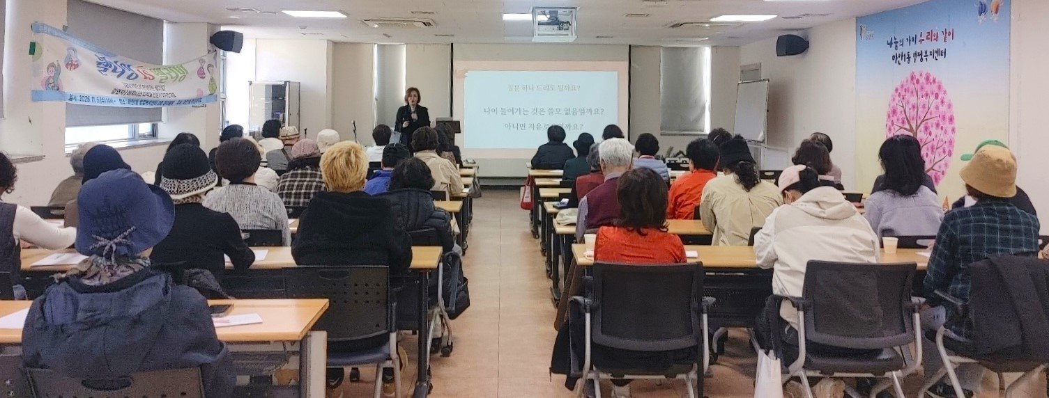 이번 특강은 ‘웰다잉’을 주제로 진행했으며 삶과 죽음을 되돌아보며 일상 속에서 건강하고 의미 있는 노년을 준비하는 방법을 함께 살펴보는 시니어 인문학 강의로 꾸려졌다.