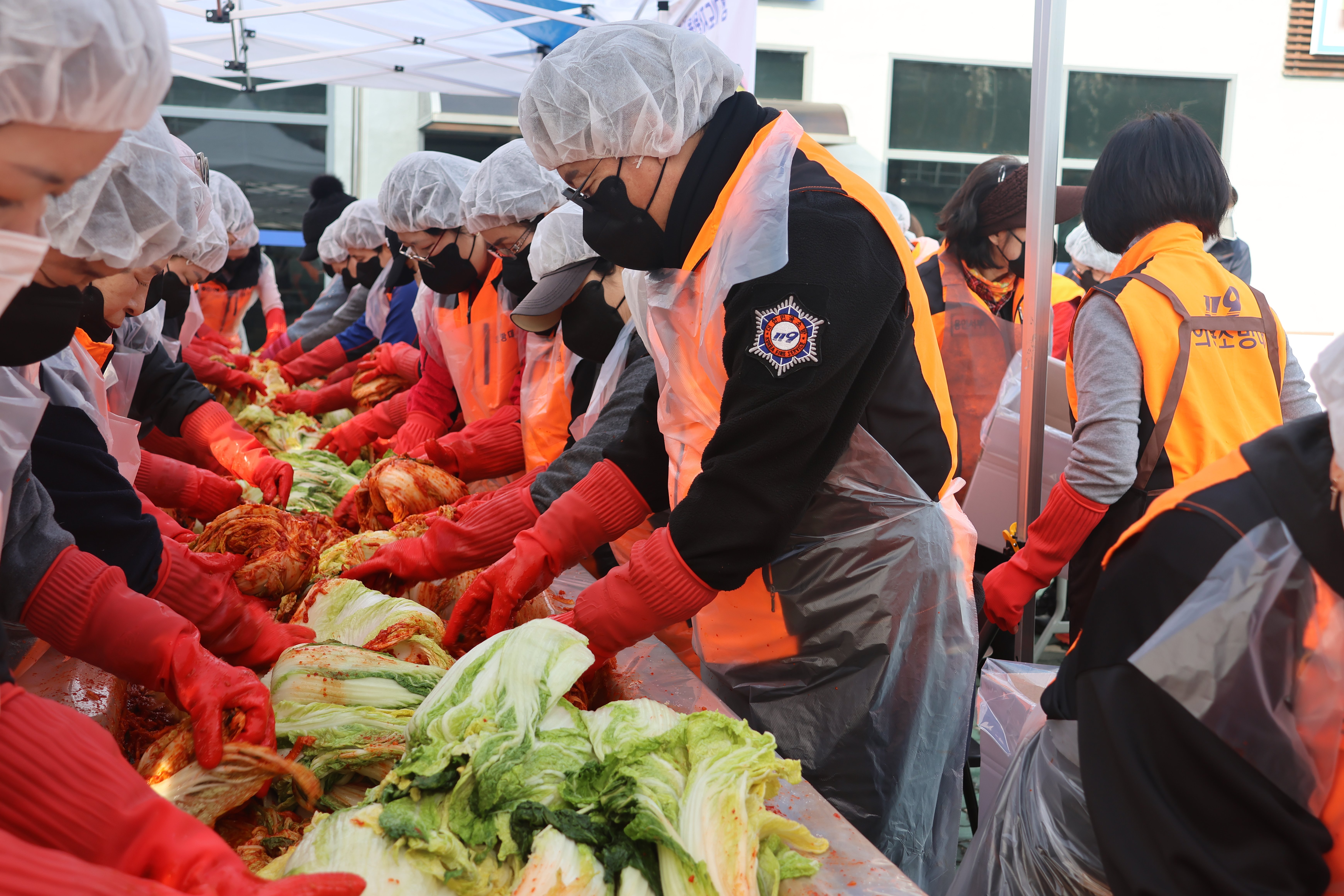 이번 행사는 의용소방대원들이 직접 김장김치 120박스를 담가 기흥구·수지구의 소외계층과 어려운 이웃에게 전달했다.