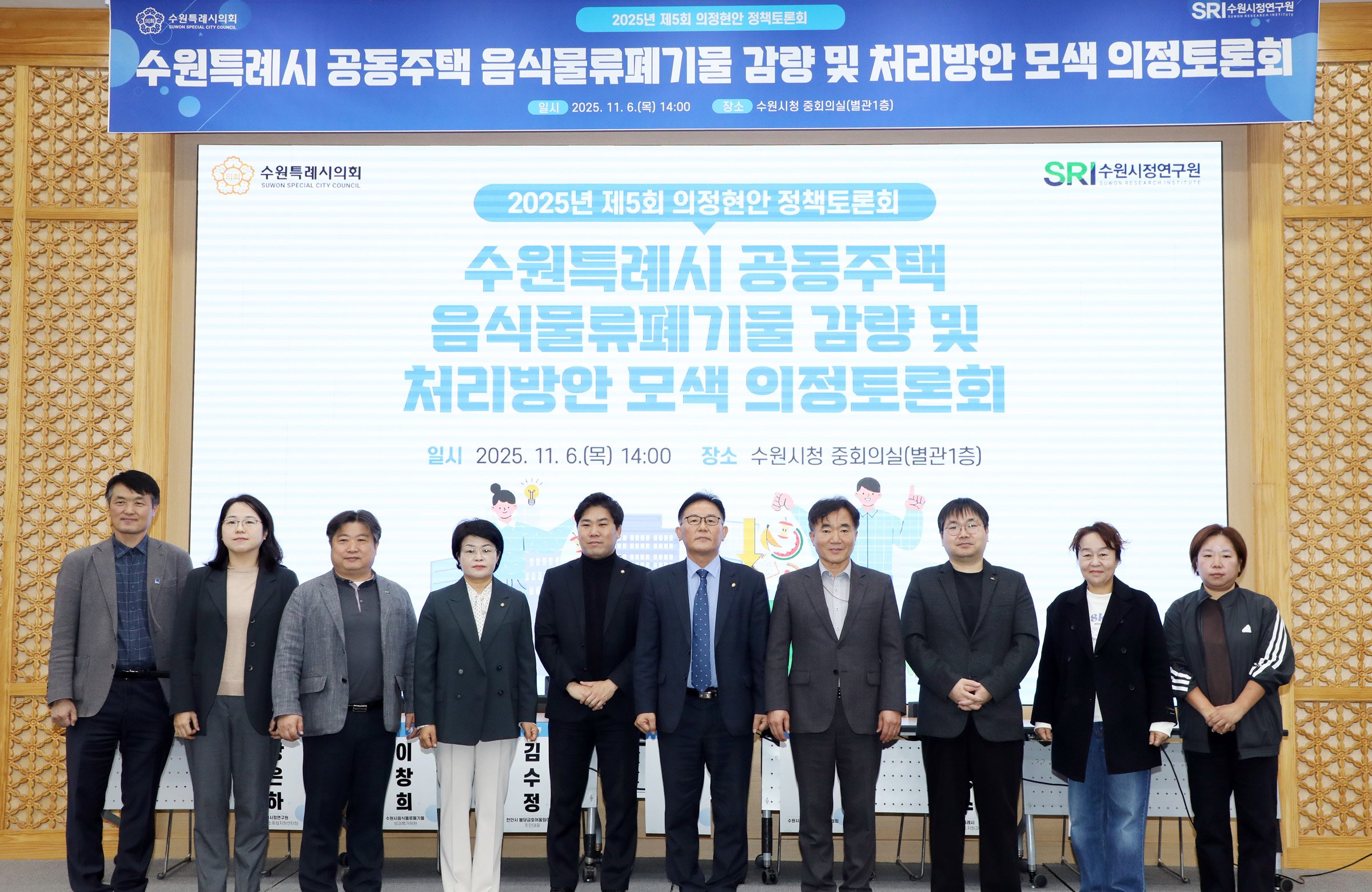 [한국Q뉴스] 수원특례시의회 환경안전위원회는 11월 6일 오후 2시, 수원시청 별관 1층 중회의실에서 ‘공동주택 음식물류폐기물 감량 및 처리방안 모색’이라는 주제로 의정토론회를 개최했다.