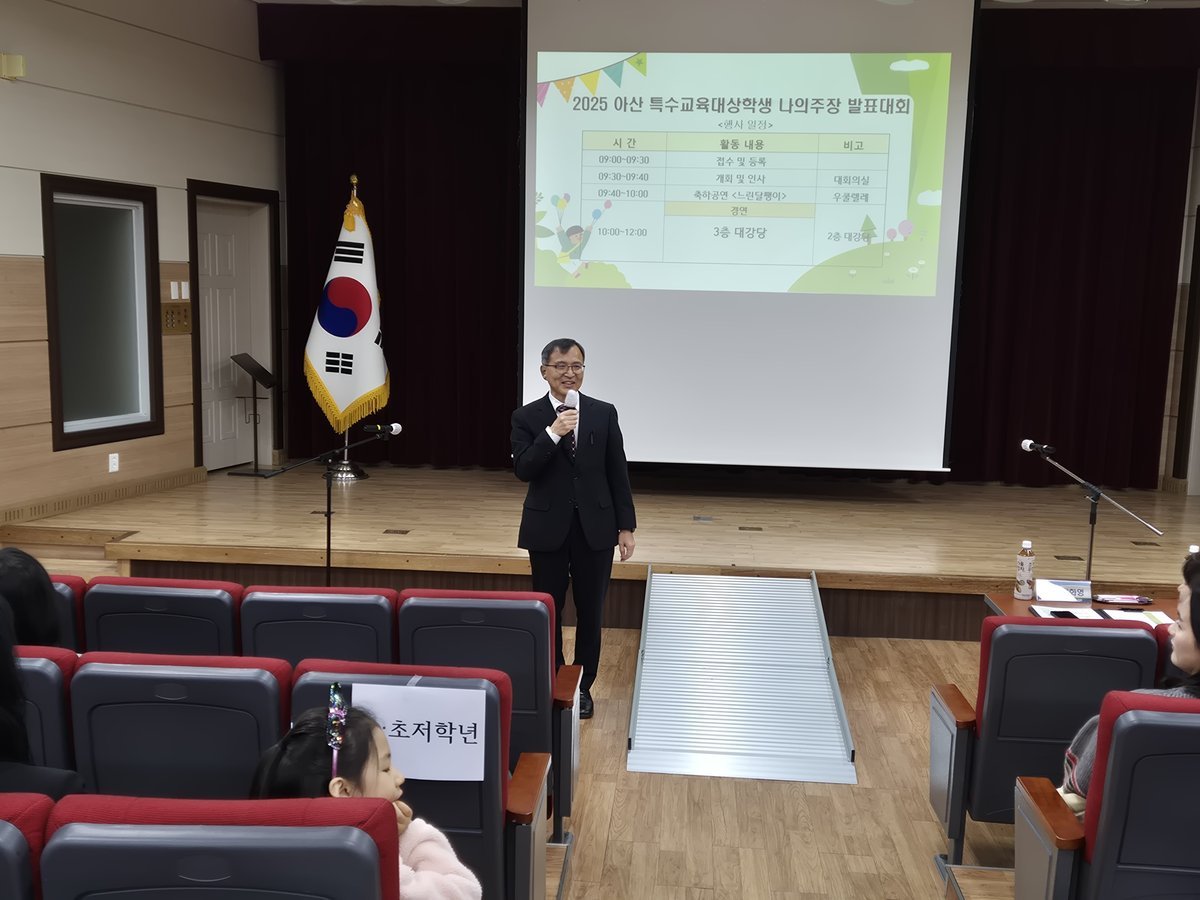[한국Q뉴스] 아산교육지원청은 2025년 11월 6일 아산교육지원청 대강당에서 특수교육대상학생들이 자신의 생각을 키우고 표현력을 기를 수 있는 기회의 장을 마련하기 위해 '2025 아산 특수교육대상학생 나의 주장 발표대회'를 개최했다.